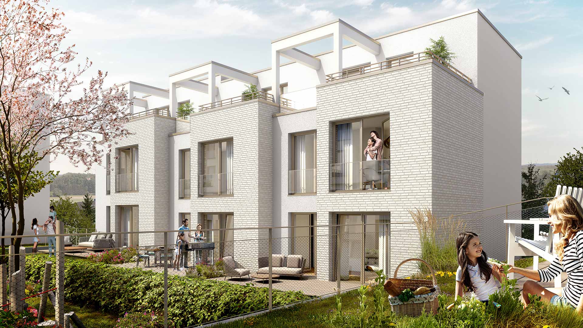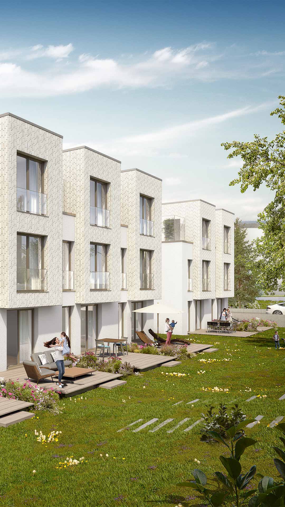Entlang der Ihinger Straße und am Steinbruch entstehen sechs Doppelhaushälften und 19 Reihenhäuser. Das Quartier “Zuhause im Sonnenfeldle” bereichert die Stadtentwicklung Magstadts mit abwechslungsreichem und grünem Wohnen. Die Wohnungen öffnen sich größtenteils nach Südwesten und bieten Terrassen, Gärten und Dachterrassen. Jedes Haus verfügt zudem über zwei Parkmöglichkeiten. Die BBG plant fünf verschiedene Gebäudetypen, um ein ökologisch nachhaltiges und energieeffizientes Wohnquartier zu schaffen. Das Quartier wird nach den Standards eines Effizienzhauses 55 EE gemäß der Bundesförderung für effiziente Gebäude (BEG) errichtet.